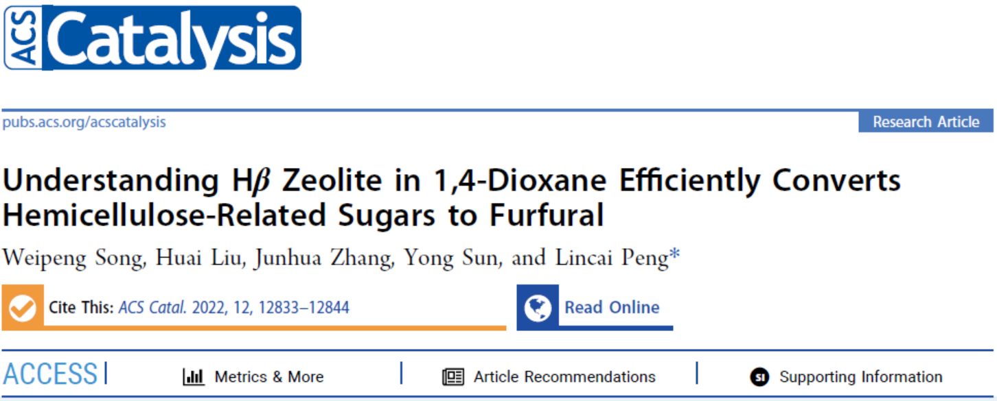 生物质化工团队关于半纤维素高效催化转化选择性制备平台化学品糠醛的最新研究成果“Understanding Hβ zeolite in 1,4-dioxane efficiently converts hemicellulose-related sugars to furfural”在美国化学会催化领域旗舰期刊《ACS Catalysis》发表(中科院双一区TOP期刊,影响因子13.7)。论文的第一作者为独播库