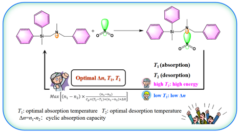 分子分离与催化团队采用了创新的方法,通过合成低共熔溶剂(DESs)和胺烃基硅烷吸收剂,制备了具有卓越H2S和SO2吸收性能的吸收剂。这些吸收剂不仅在低分压下表现出出色的吸收能力,还具有高热稳定性和低粘度的特点,克服了传统方法的局限性。研究团队还通过热力学和动力学分析,深入揭示了吸收剂性能与分子结构之间的关系,这一系列研究为酸性气体吸收剂的设计与合成以及能耗分析等方面提供了全新思路。