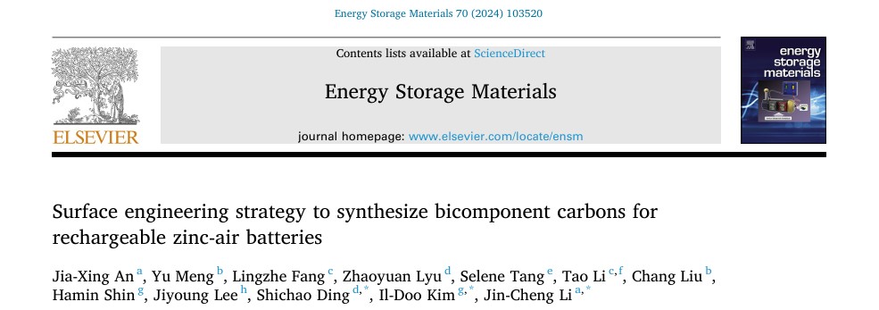 上述研究以“Surface engineering strategy to synthesize bicomponent carbons for rechargeable zinc-air batteries”为题,发表在国际高水平期刊Energy Storage Materials上。论文的第一作者为独播库