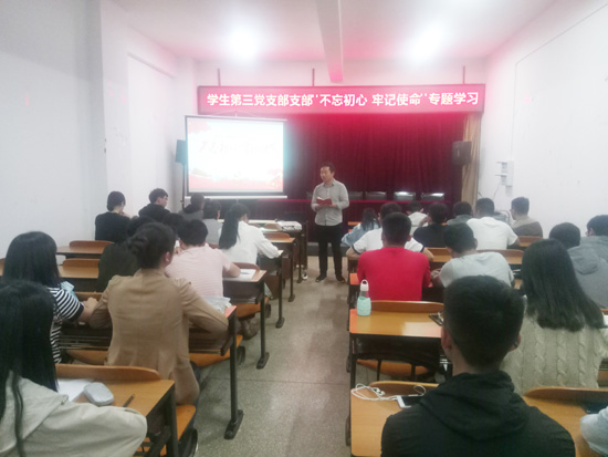 为进一步学习好、研究好、教育好、宣传好十九大精神, 2018年5月23日晚,化工学院学生第三党支部在化工楼负一楼报告厅开展了“不忘初心 牢记使命”专题学习。