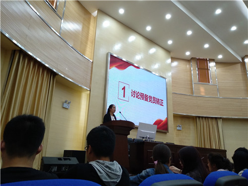 根据《中国共产党章程》、《中国共产党发展党员工作细则》,按照发展党员5个阶段25个步骤,化工学院学生第五党支部于2018年5月23日19点整,在化工楼100报告厅召开了关于讨论预备党员转正的支部大会,党支部全体党员参会,部分入党积极分子和入党申请人列席参会,会议由党支部书记金雯老师主持。