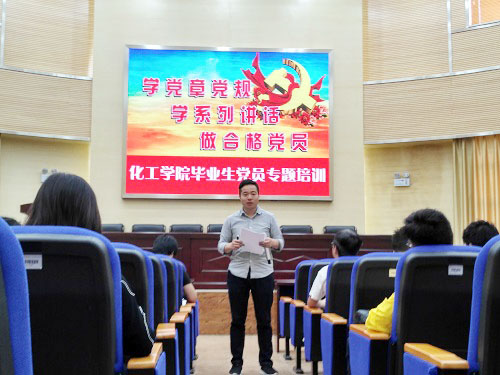2018年5月9日,独播库 在化工楼100报告厅召开了毕业生党员专题培训会。2018届毕业生党员同志参加了此次会议,本次培训由袁敬老师主持。