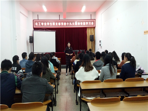 2017年10月24日21:30,独播库 化工专业学生党支部支部大会在化工楼负一楼报告厅召开党的十九大精神专题学习会。支部所有正式党员、预备党员共32人参加了此次会议。大会旨在将党的十九大精神落实到支部内部,深化党内教育,规范党内作风。