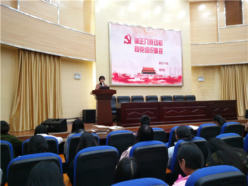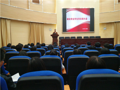 2017年11月8日19点整,独播库 能化专业学生党支部关于讨论入党申请人能否列为入党积极分子的支部大在化工楼100报告厅举行。参加会议的有党支部书记金雯老师,全体正式党员、预备党员及部分入党积极分子。