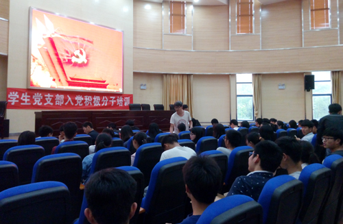 培训由党支部书记袁敬老师主讲,结合“两学一做”总要求,培训内容主要分为《党章》、党史、对积极分子的现实要求三方面。袁老师带领入党积极分子共同学习了党的指导思想、两个一百年目标、五位一体等要点。共同回顾了中国共产党自一大到十八大的光辉历程。最后,袁老师通报了入党积极分子近两年的表现情况,并对学业、生活、社会实践、服务群众等方面提出了明确要求。