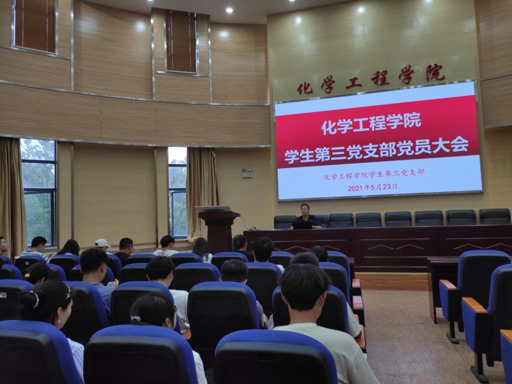 2021年5月23日19:00,独播库 学生第三党支部在化工楼100报告厅召开支部党员大会。大会由支部书记袁敬老师主持,全体党员和16名发展对象参加了会议。