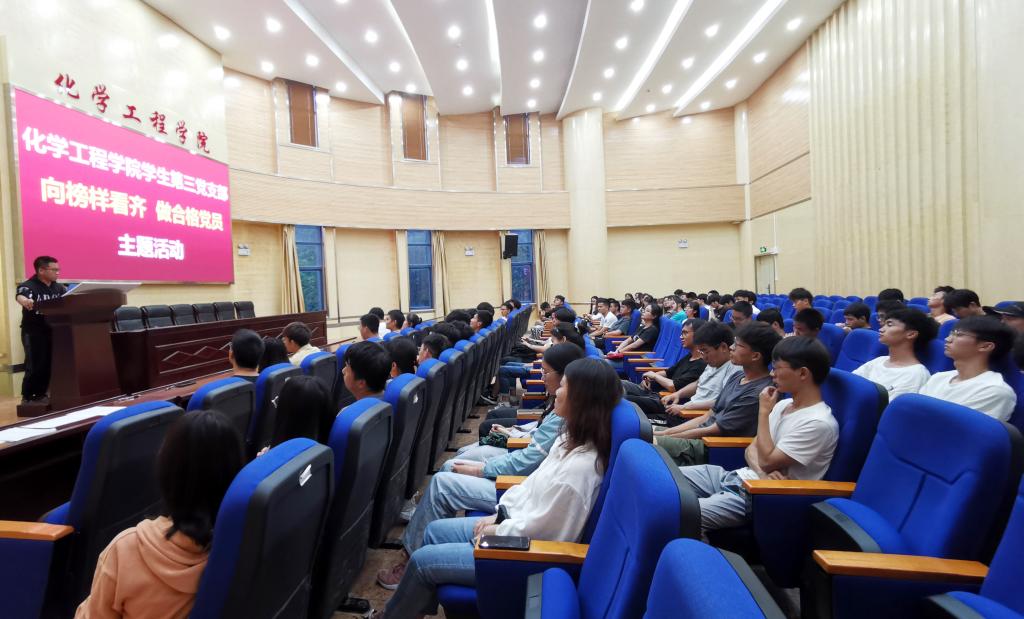 2021年6月15日晚,独播库 学生第三党支部在化工100报告厅开展了以“向榜样看齐做合格党员”为主题的党日活动,学生第三党支部40名党员、50名入党积极分子参加了此次活动。