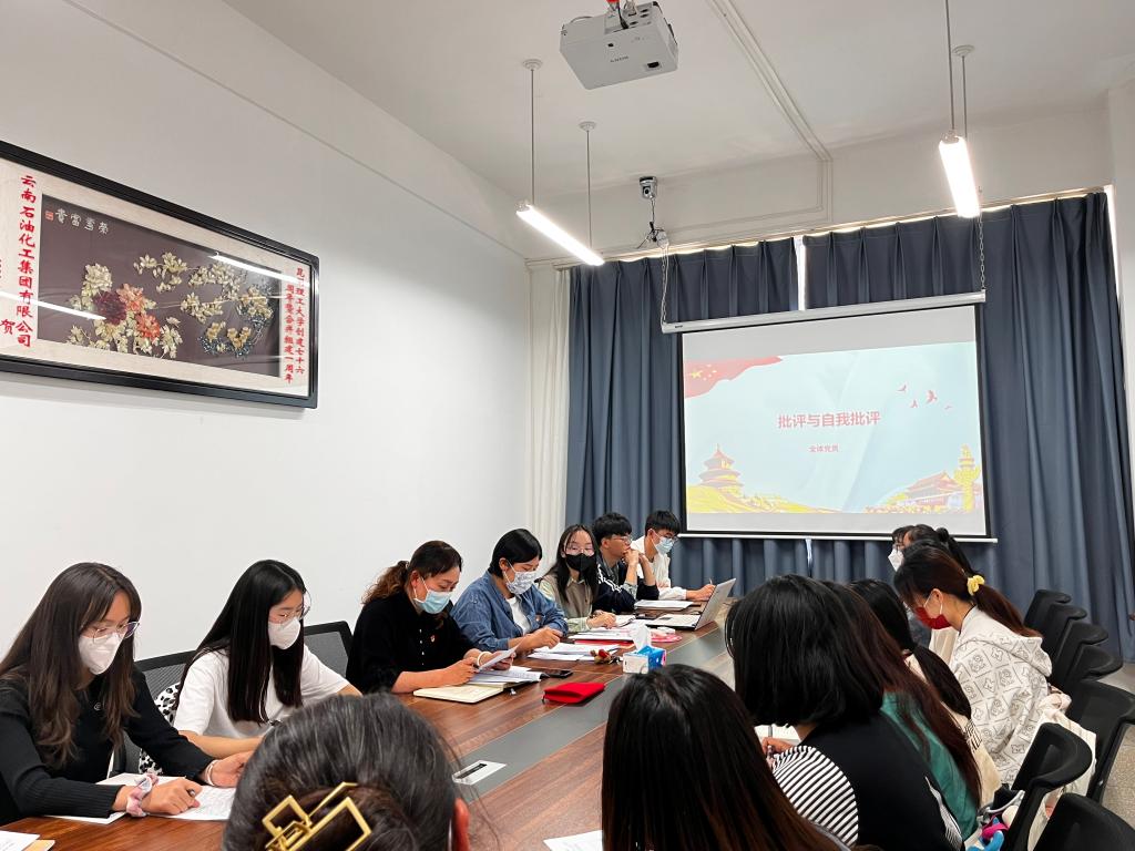 紧接着由李凯宇同志带头开始自我批评,深刻剖析自身的不足和存在的问题,其他党员根据自己的日常观察和接触对其进行批评,其余党员同志也逐一完成这一环节,现场讨论气氛非常热烈。随后,学院党委副书记宁玲同志对此次组织生活会给予了肯定,也指出了不足。同时提出下一步工作要求:支部班子成员要认真吸取同志们给出的意见和建议,认真整改,强化解决问题的实际效果,加强党支部的自身建设。会议最后对支部正式党员进行了民主评议。