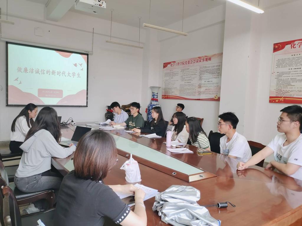 学生第二党支部在化工楼338会议室开展“做廉洁诚信的新时代大学生”专题党课,支部全体党员参加参加。