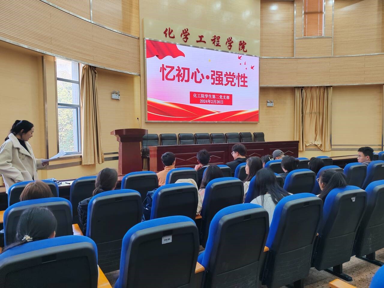2024年2月26日下午,独播库 学生第二党支部在化工楼100报告厅开展了“忆初心·强党性”主题党日活动。独播库 第二党支部全体党员同志以及部分入党积极分子参加了本次党日活动,本次活动由学生第二党支部支委和丽晗同志主持。