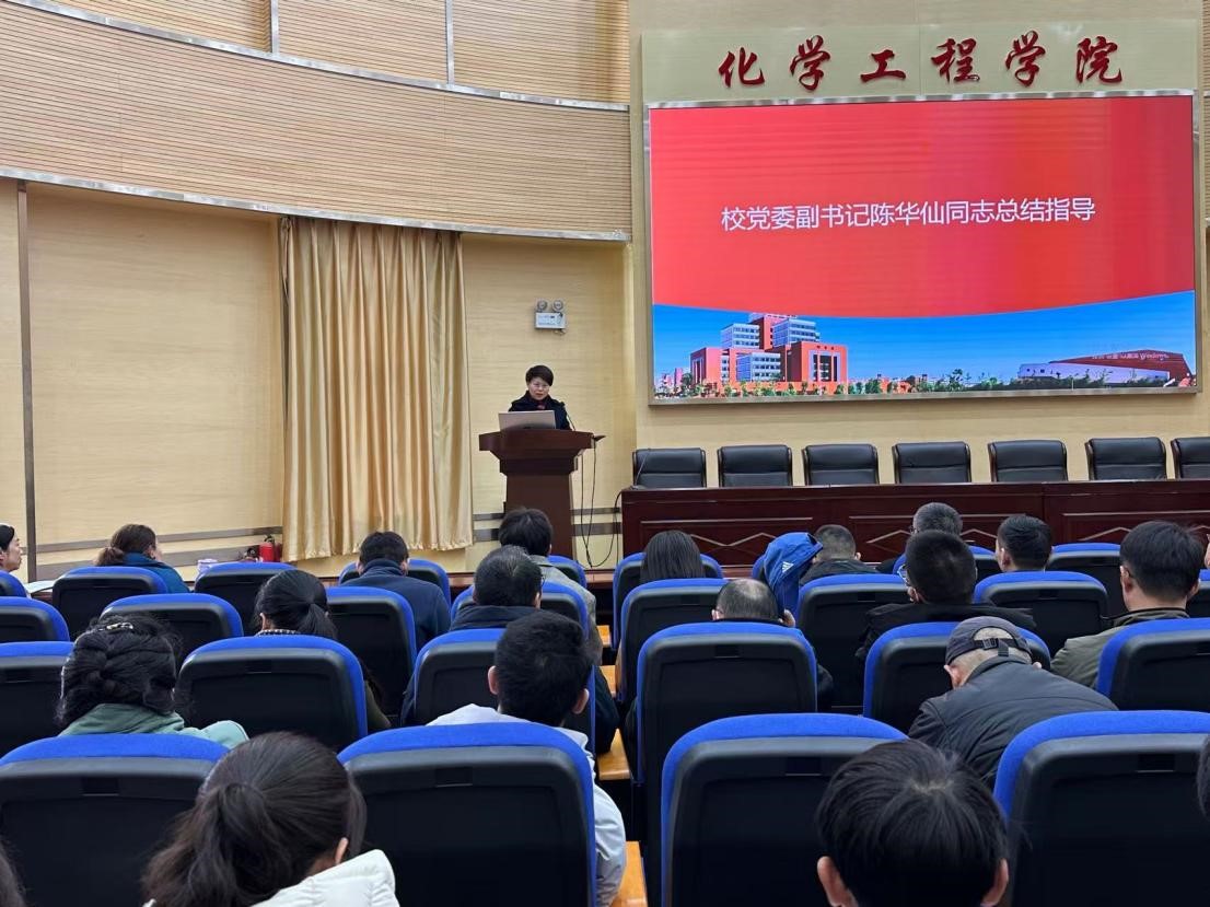 党委和信息工程与自动化学院党委共同举办了理论学习中心组联合集中学习。校党委副书记陈华仙同志、宣传部部长王仁强同志进行学习指导,化工学院、信自学院理论学习中心组成员,化工学院、信自学院学术团队负责人,化工学院全体党支部书记、支委,化工学院各系主任、副主任、科室负责人以及化工学院近三年进校的青年教师等70余人参加学习。