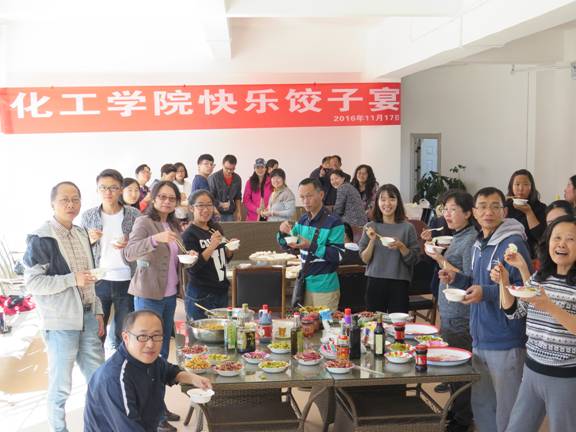 2016年11月17日在学校田径运动会期间,化工学院工会组织全院教职工在学院“教职工之家”举行“快乐饺子宴活动”,学院60余人参加了活动。