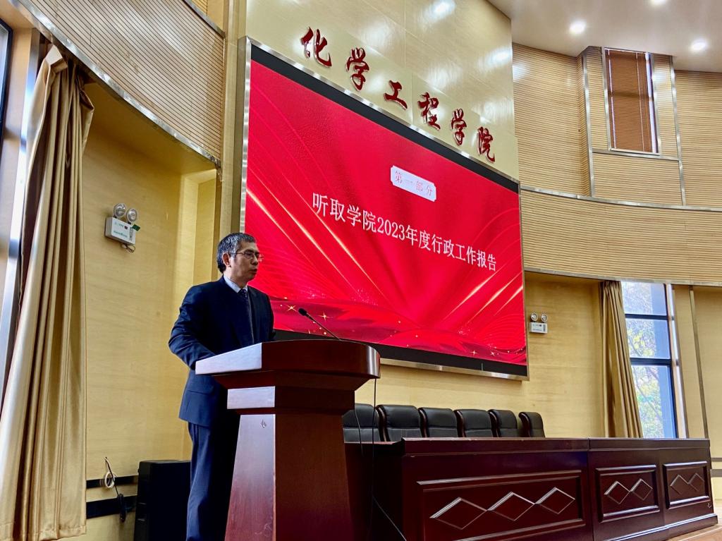 院长罗永明向大会做了2023年行政工作报告,报告全面总结一年来学院发展的主要成就和经验,指出了发展中存在的问题,明确了未来发展战略目标和建设思路;工会主席常静华向大会做了2023年工会工作报告,对学院工会工作进行全面总结和回顾,并提出2024年的努力方向,力争把“模范职工小家”荣誉维护好,让“化工小家”更加温暖和谐友爱。李斌副院长向大会作了学院财务工作报告,对学院各项经费的财务运行情况和收支执行情况向代表进行了说明。全体代表审议并通过了学院2023年行政工作报告、工会工作报告和财务工作报告。