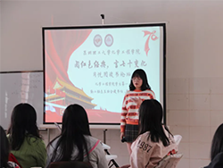 吕涛同学为大家分享中国交通发展史,周世浩同学带领大家学习《中国共产党党内重要法规汇编》,余毓兰、余俊伟同学相声《理科生》表演,苏秋萍同学带领大家学习《习近平新时代中国特色社会主义思想学习纲要》,欧阳明同学带领大家学习《习近平关于“不忘初心,牢记使命”重要论述选编》。