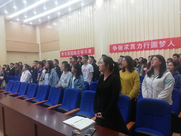 16级欧阳明、17级董科同学以自己的亲身经历分别分享了一直以来心目的“榜样”是怎样伴随着自己不断成长进步的,告诉大家榜样的力量,呼吁大家要努力学习,努力实现自己的人生价值,要为实现中华民族的伟大复兴而不懈奋斗。其次,是大家集中观看了由中央组织部、中央电视台联合推出的《榜样》专题节目,让大家学习领会楷模们“牢记初心和使命,做到心中有党,心中有民,全心全意为人民服务”的精神。