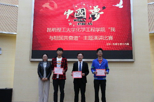 在比赛中,化工183班的孙陆毅同学精彩的《时代新人的追梦之路》获得一等奖;化工194班的徐阁辰、卢江枫两位同学讲述的《不忘历史勇担当,青春建功新时代》获得二等奖;装控181的余涛等同学以视频《大国的崛起》与演讲结合的独特形式获得三等奖;装控191的罗鑫等同学带来的《祖国新时代,昆工新未来》获得最佳创意奖;化工184的程胜同学讲解的2016年感动中国人物《秦玥飞事迹》获得最佳寓意奖。