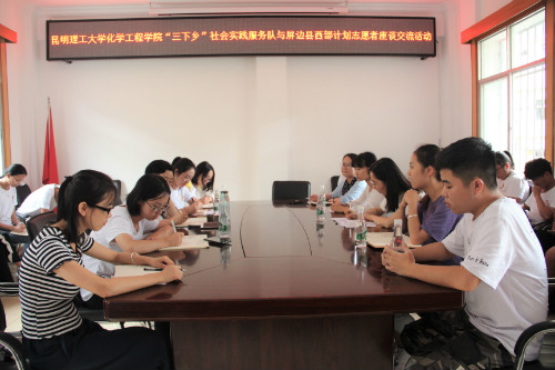 2019年7月4日14:30,独播库 暑期三下乡社会实践团队在屏边团县委会议室与当地西部计划志愿者进行了座谈交流。