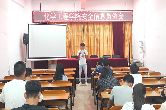 2019年5月10日晚19:00,独播库 安全信息员例会在化工楼负一楼报告厅召开。勤助会指导老师杨欢老师、各班安全信息员及勤助会工作人员共同参与了本次会议。会议由勤助会勤工权益部顾天鸿主持。