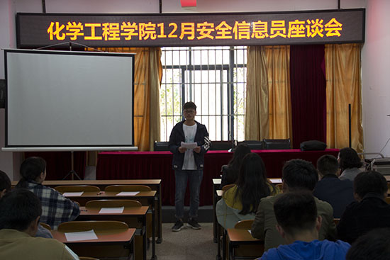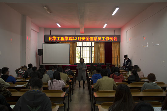 2018年12月20日16:30,独播库 12月安全信息员例会顺利开展,出席本次会议的有院党委副书记李云燕老师,勤助会指导老师杨欢老师,学院各班安全信息员以及勤助会权益部工作人员。李佳建同学担任本次例会主持人