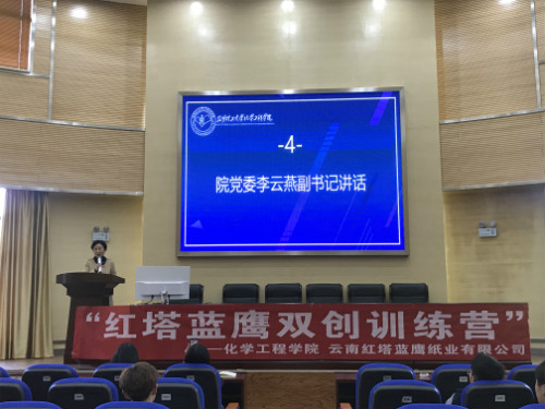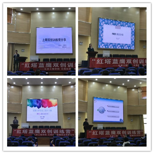 于化工楼100报告厅开展了“红塔蓝鹰双创训练营” 2019年开营仪式暨2018年结营仪式。院党委副书记李云燕老师、团委李凯宇老师、谭宏雪老师出席活动,本届双创训练营营员及部分团学干部参加,活动由创新创业部刘小铭主持。