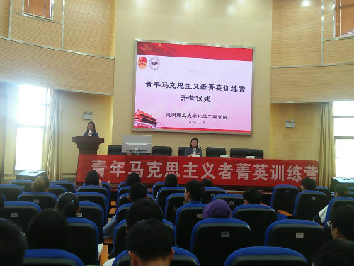 2018年10月18日13:30独播库 在化工楼100报告厅举行2018年“青年马克思主义者菁英训练营”开营仪式。院党委副书记李云燕老师、院团委李凯宇老师、学工办杨欢老师与全体训练营成员一同参与。