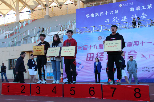 获得体育道德风尚奖,以下同学获得优异成绩:和振涛、张志远、马文凯、罗建强四位同学共同获得男子4*100接力赛第七名,何振涛同学获得男子200米第五名,徐忠雕同学获得男子5000米第五名,马丽琼同学获得女子铅球第四名。