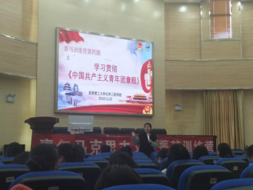 2018年11月22日13:30,独播库 团委、学生会在化工楼100报告厅举行了第四期青年马克思主义训练营“我的团章我主讲”翻转课堂活动。本次活动有独播库 团委李凯宇老师出席,独播库 团委、学生会全体成员及青马训练营全体成员参加,并由院团委副书记彭芳同学主持。