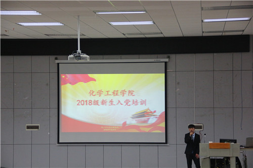 随着一段中国共产党入党教育视频的播放,本次活动正式开始,视频播放结束后,主持人提出了六个关于党的基础知识问题,2018级的新生们积极踊跃地进行竞答。接下来,由四位化工院的优秀同学给大家做了简单的分享,装控152班王绍银同学和化工153班张加明同学分别结合自己的入党经历、在校表现以及大学四年来的成长,给同学们讲解了成为一名优秀的中共党员应该具备怎样的素质,随后,两名17级的同学分别从中国共产党的性质以及加入中国共产的意义两方面让同学们全面认识了中国共产党。