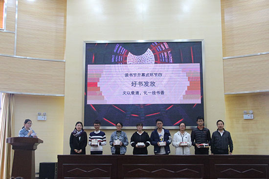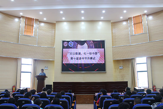 随后,读书社副社长刘吉赛上台发言,向同学们介绍了读书社的成立宗旨、发展历程以及第十届读书节将举办的活动。