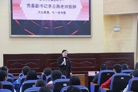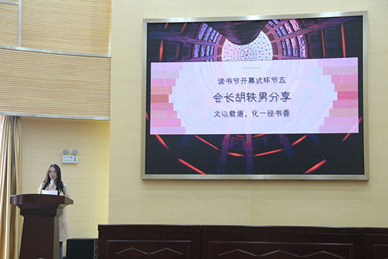 活动伊始,李云燕副书记为读书节开幕式致词,肯定了以往读书节活动,并对第十届读书节表示出很高的期望,希望读书节越办越好,同学们积极参与,珍惜时间多阅读以此来丰富人生提升自我,紧接着老师分享了阅读《偷影子的人》的心得,并宣布读书节正式开幕!