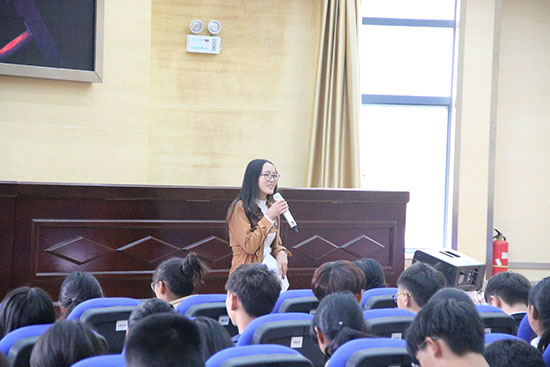 接下来,是勤助会会长胡轶男关于“我还年轻”的主题发言,她以自己大学的改变为例,向同学们表明充分利用时间提升自己重要性。