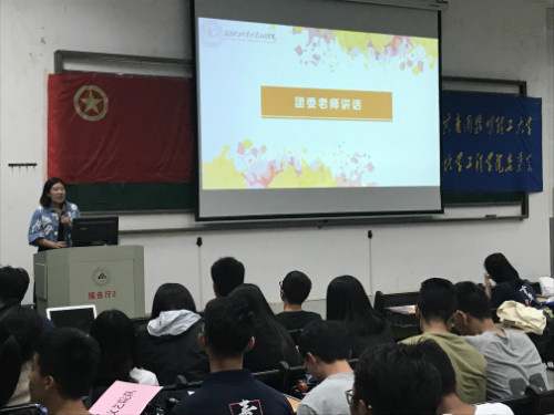 团委李凯宇老师、17级辅导员杨欢老师出席,化工院团委、学生会全体成员及18级全体同学参加,并由学院团委副书记彭芳、学生会副主席王树云主持。