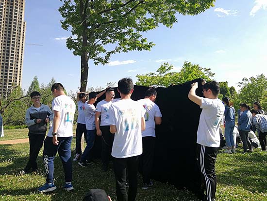 在伴随着惩罚的游戏中,活动氛围进入高潮,大家都玩得非常开心。所有游戏过后,进行的是团队大总结。采取总分总的方式,首先由指挥员引导所有成员围绕“没有完美的个人,只有完美的团队”以小组为单位总结经验、感想、收获以及付出。