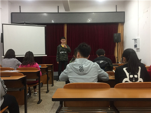 全体社员依次抽签后依次上台朗诵诗词。首先是油运171班付和成同学朗诵的《沁园春·雪》,伴随着优美的背景音乐,踏着缓缓的步伐走向台前,浑厚的嗓音,丰富的表情,向同学们表达了对祖国深沉的爱;随后社员们依次带来《寻梦者》、《沁园春·长沙》、《中国梦》、《何梦娇》、《我的中国心》、《祖国颂》等经典诗词的真情朗诵,充分抒发了爱国情怀。最后,陈敬一同学朗诵了戴望舒的《我用残损的手掌》,诗人以“残损的手掌”抚过祖国大地的形象化思绪,在想象中再现了他的家乡、长白山、黄河、江南、岭南以及他没有体验过的解放区的景象,以“手掌”的感觉展示了他内心情感的变化。诗人先是凄楚忧愤,转而热切期盼,对解放区寄予了民族复兴的希望。陈敬一同学的朗诵使同学们身临其境,台下的同学静静地聆听,领悟诗词中的爱国情怀。
