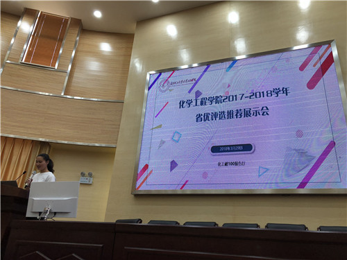 2017-2018学年省优评选推荐展示会于2018年3月29日下午16:00在化工楼100报告厅举行。院党委副书记李云燕老师、学工办主任袁敬老师、学工办李凯宇老师、化工院学生代表共计100余人参加了本次大会。