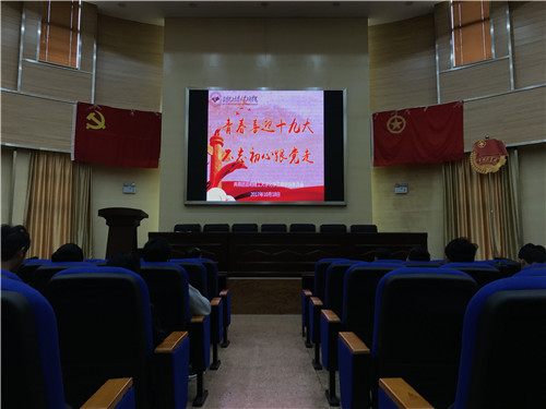 学院于2017年10月17日在学院微信公众平台进行喜迎党的十九大内容推送,对党的十九大相关知识进行普及和解读。学院党委、团委于2017年10月18日9点,组织学院教师党员、学生党员、团学干部及团员青年在化工楼100报告厅收听收看党的十九大盛况。