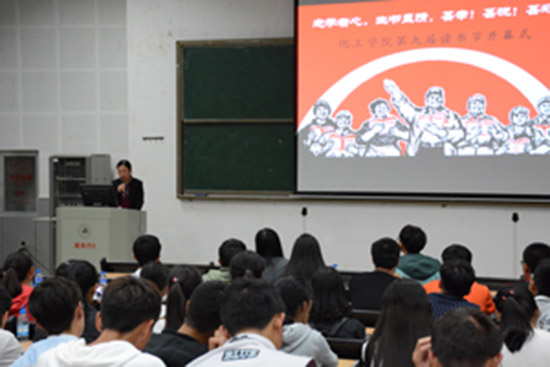 2017年9月29日19:00,化学工程学在中心100举办了第九届读书节开幕式,本届读书节主题为“走学者心,生书墨情,甚幸!甚悦!甚好!”。院党委副书记李云燕老师、勤助会第十一届指导老师李覃老师、勤助会本届指导老师李凯宇老师出席了本次开幕式,此外我们还有幸邀请到了云师大博雅书友会、昆工读者协会、昆工醉雨轩文学社、昆工行知文学社的30余名嘉宾与独播库