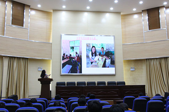 接下来,彭芳讲述她的个人经历,她就在调研当地农作物途中所经历的种种困难,为大家描述当地人民生活的艰辛。她还表示自己被刘晓帆书记对当地村民的付出深深感动了,同时也指出跟他们相比,我们的生活已经优越太多,希望能够积极投身到基层建设中,尽自己所能,支持扶贫,参与扶贫,用自己的力量,点亮这个世界。