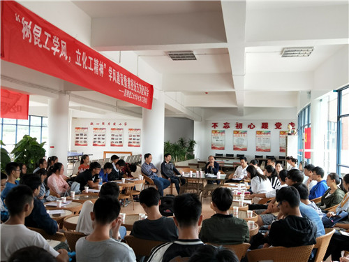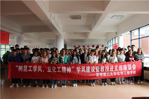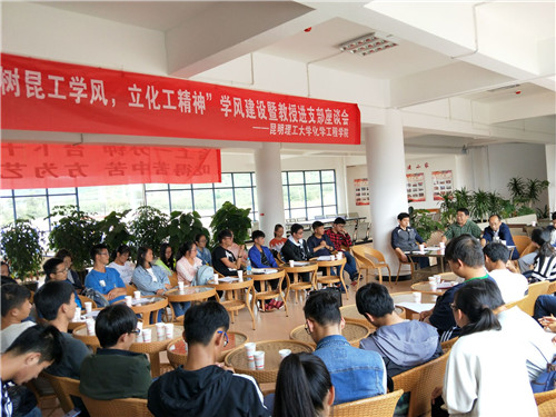 在化工楼三楼平台召开“树昆工学风,立化工精神”学风建设暨教授进支部座谈会。本次座谈会由学工办主任袁敬老师主持,出席本次座谈会的有院党委齐毅书记,教授代表夏举佩老师、彭林才老师、孙彦琳老师、赵文波老师,2017级班主任代表杨劲老师,以及学工办全体辅导员;同时,参加本次座谈会的还有2014级优秀学生代表,装控专业学生党支部党员,2016级、2017级学生代表,以及团委、学生会学生干部。