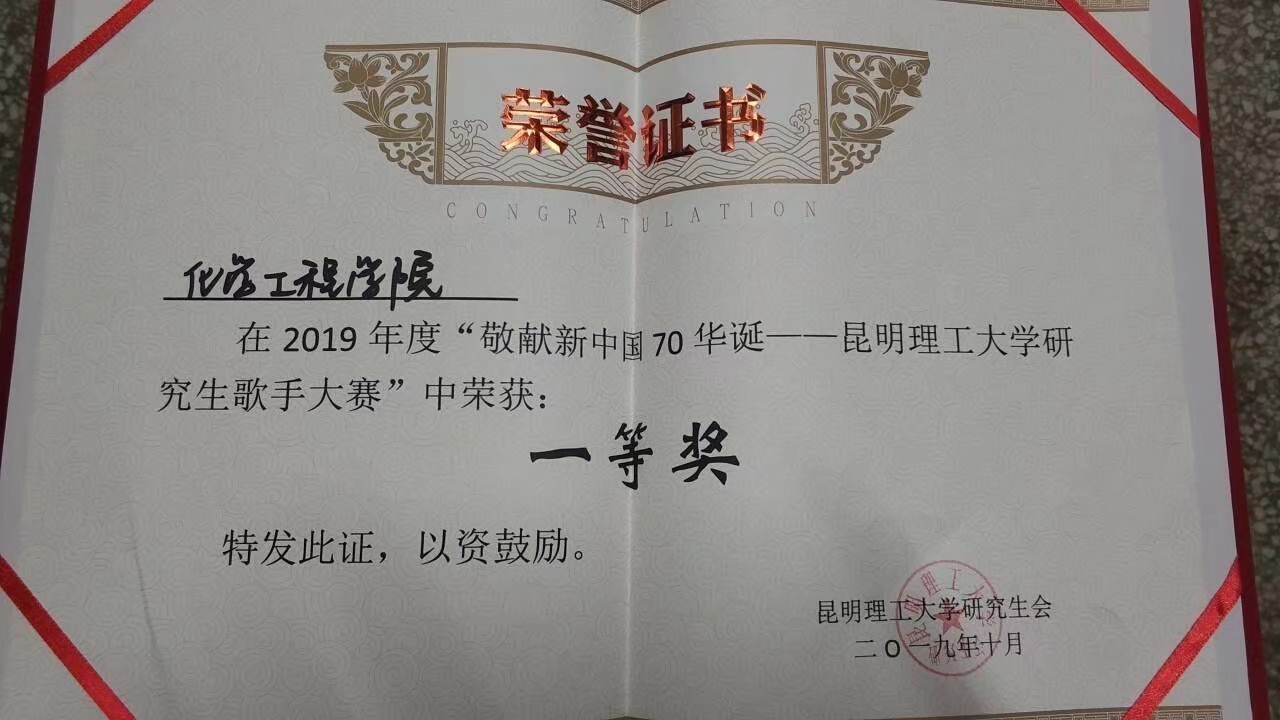 为迎接新中国成立70周年,深入贯彻学习习近平总书记“不忘历史才能开辟未来,善于继承才能善于创新”的讲话精神,独播库 的同学们精心组织、排练合唱《我和我的祖国》,并通过了海选、初赛等层层选拔,最终荣获我校“敬献新中国70华诞——独播库 研究生歌手大赛一等奖”。