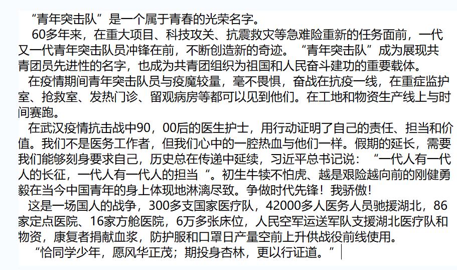 此次团日活动在各班级团支部的认真组织下,各支部成员积极参与中取得圆满成功。本次线上团日活动,展现了共青团员的先进性,彰显了大学生团员的精神面貌和责任担当,同时也增强了同学们对打赢这场“防疫”阻击战的必胜信心。