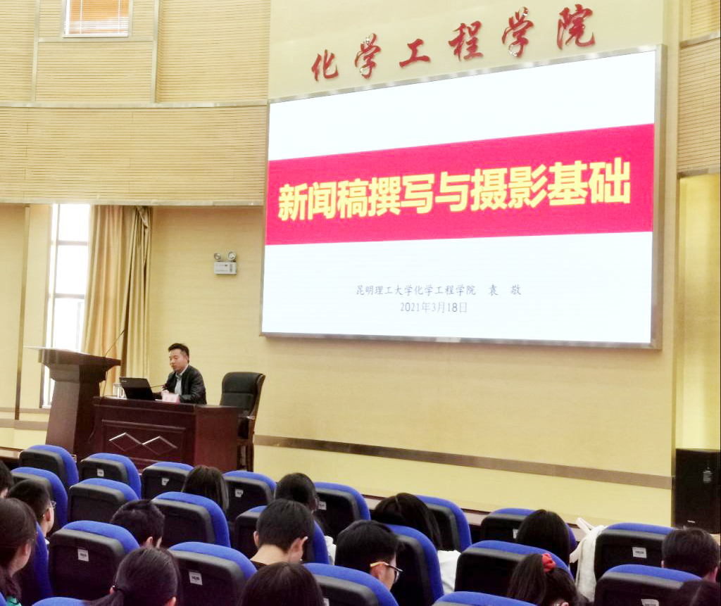 2021年3月18日15:30,独播库 在化工楼100报告厅举办了第六期青年马克思主义者菁英训练营。本次活动主题为新闻稿撰写与摄影基础,由院党委委员袁敬主讲。院党委齐毅书记、院党委李云燕副书记、团委书记李凯宇、2019级辅导员谢丽芬、辅导员田世垚出席,100余名青马训练营营员及各班级组宣委员积极参加,朱芝同学主持。