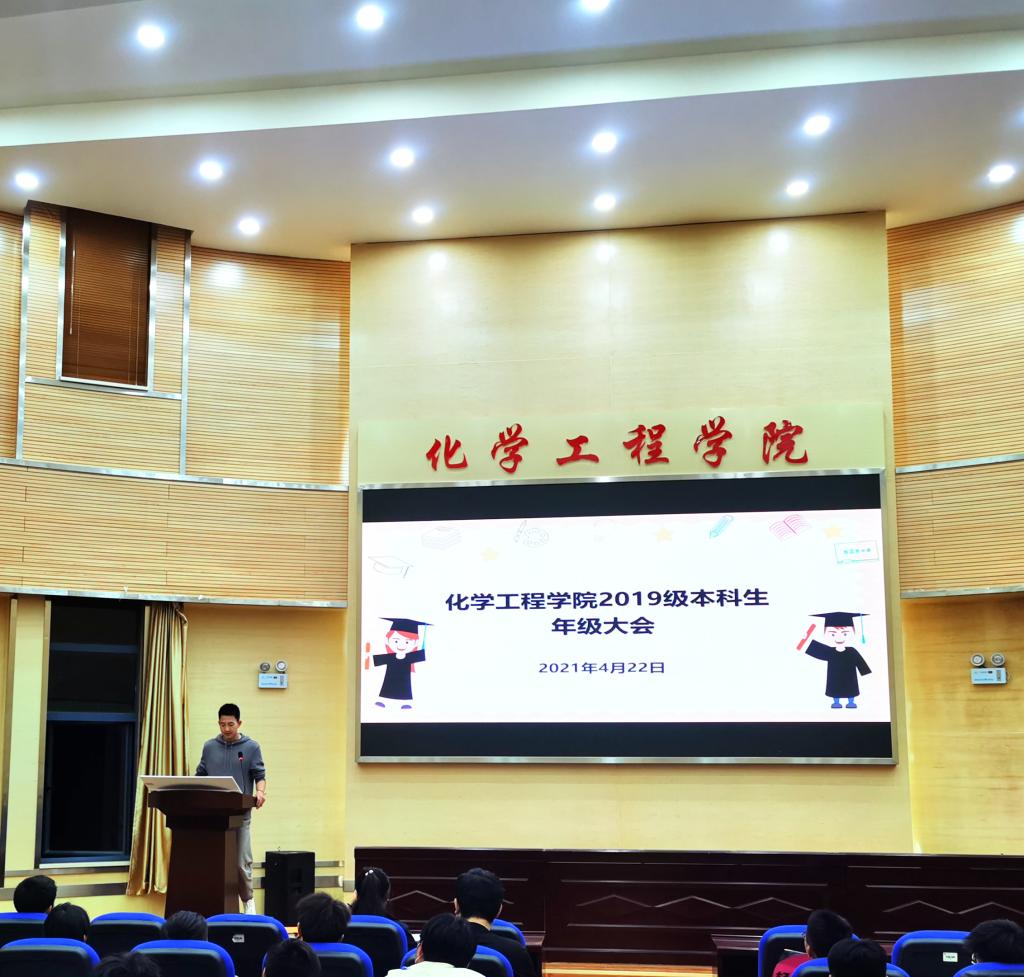 在化工楼100报告厅召开2019级本科生年级大会。会议由2019级辅导员谢丽芬主持,2019级全体学生参加。