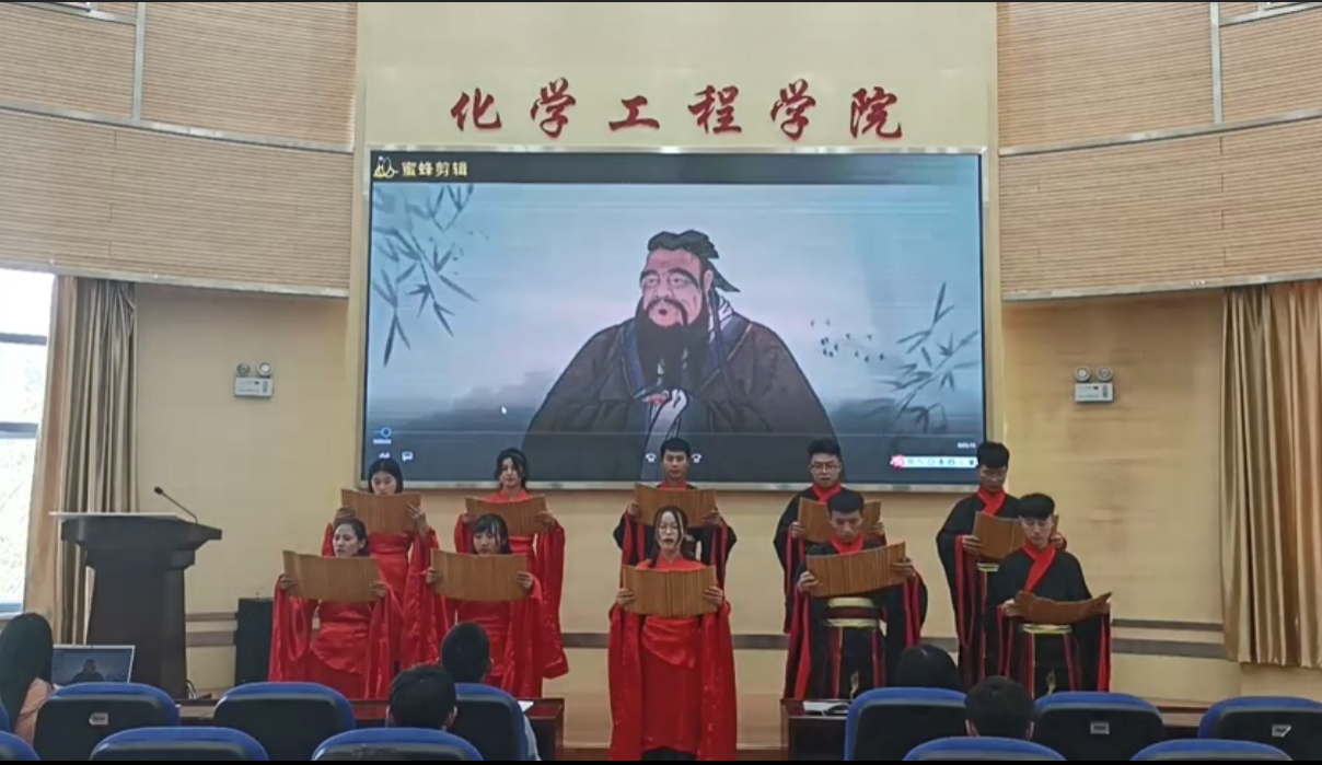 节目由咏读《孔子》节选、朗诵老党员张富清的故事、“穿越时空的对话”、“五年计划”的群聊等组成。