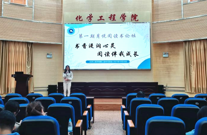 2021年10月31日,独播库 勤助会主办的“书香浸润心灵,阅读伴我成长”月悦阅活动在化工100报告厅举行,勤助会读书社全体成员及读书爱好者共计80余人参加了此次读书论坛,本次活动由张舒琦同学主持。