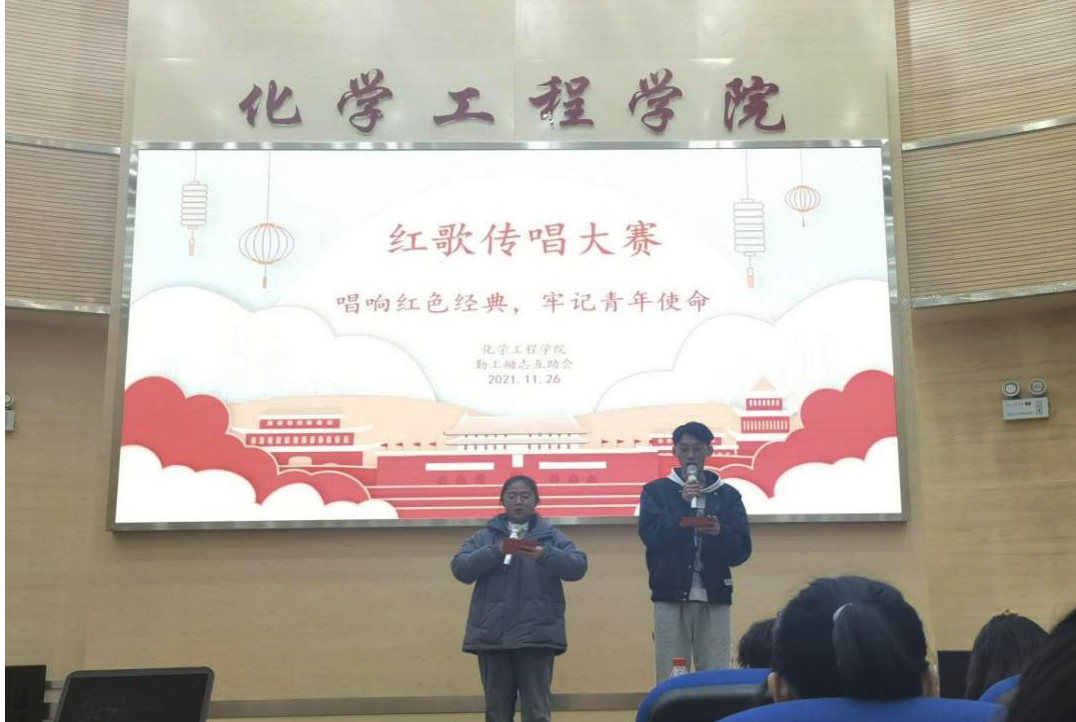 2021年11月26日,独播库 勤工励志互助会主办的“唱响红色经典,牢记青年使命”红歌传唱比赛在化工100报告厅举行,各参赛小组及观众共计200余人参加了此次活动,勤助会指导老师田世垚老师出席了本次活动,活动由叶灵汇、庞谚泽主持。