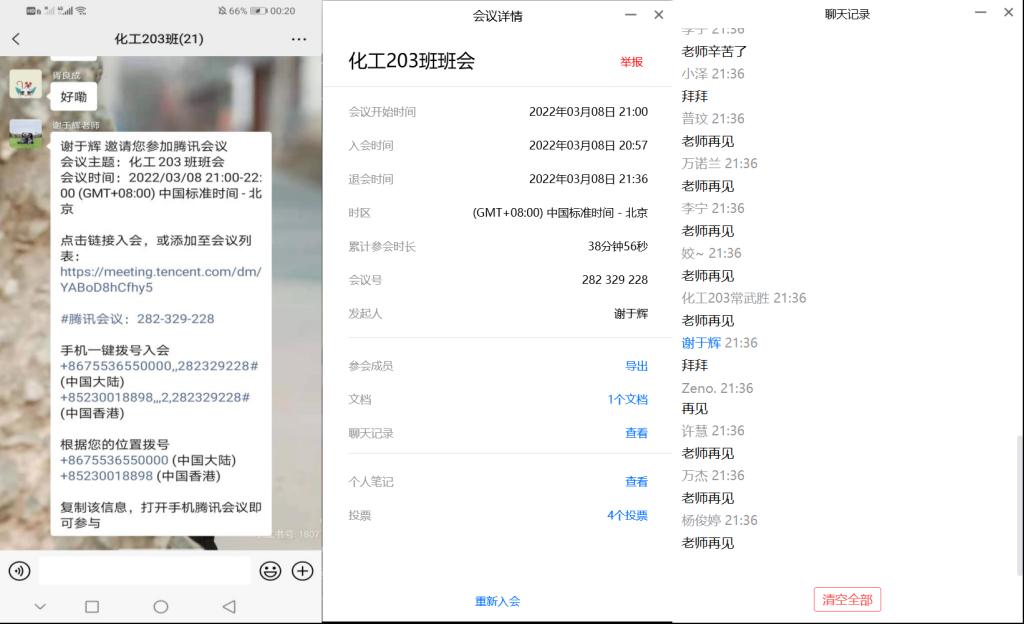 2022年3月8日,化工203班在腾讯会议上召开了“遵规守纪,崇德尚学”线上主题班会。本次会议通过线上投票的方式选取了化工203班的班委。接着,班主任谢于辉老师带领大家一起学习了学校近日印发的《独播库