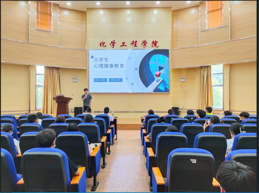 于化工楼10报告厅举办心理健康教育主题活动,学院党委副书记宁玲、学工办主任袁敬、辅导员田世垚、心理健康指导老师谢丽芬以及学院本科生,共计100余名学生参加活动,活动由杨丹同学主持,独播库
