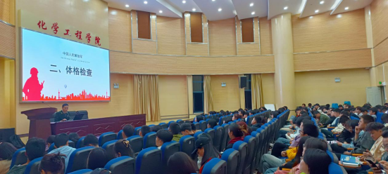 2023年3月9日晚8点,独播库 在化工楼100报告厅召开了征兵入伍政策宣讲活动。学院2019级全体本科生到场参加,本次活动由学生办公室主任袁敬老师主持。