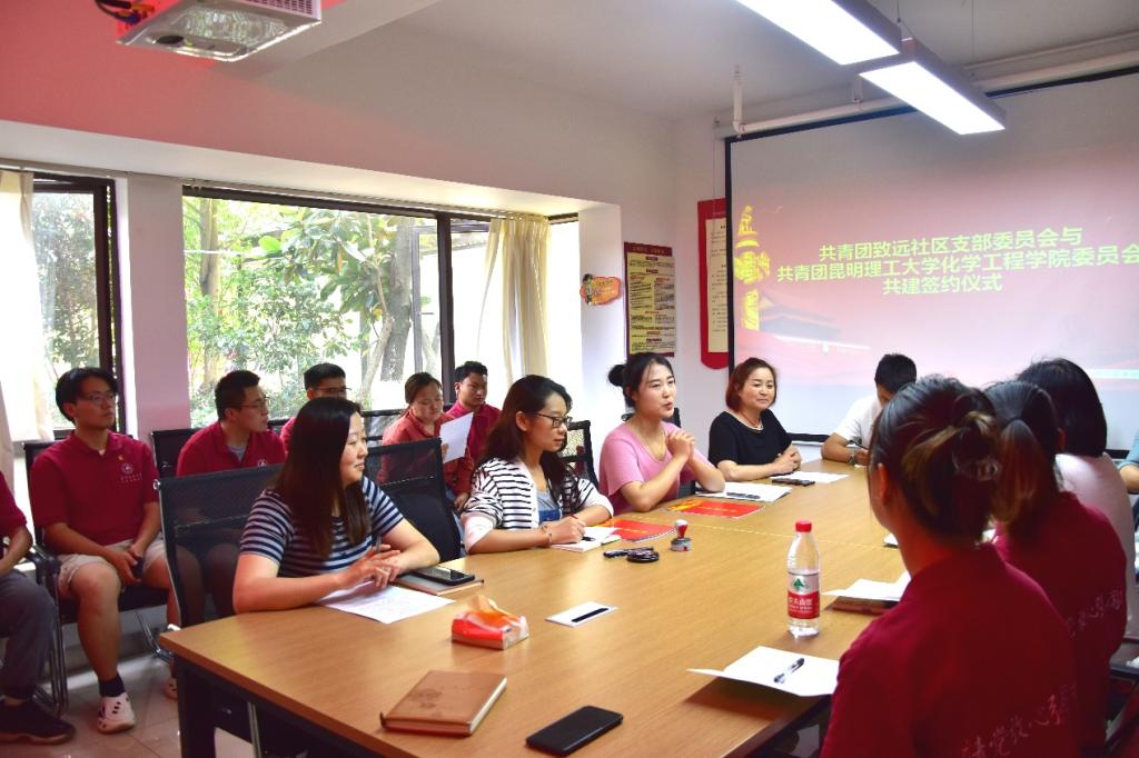 为扎实推进县域共青团基层组织改革,进一步加强社区党建带团建工作,构建校地共建新格局,2023年5月9日14点,独播库 团委、学生会团学骨干、青年志愿者协会骨干成员在独播库 团委书记李凯宇和独播库 团委指导老师赵振涛的带领下,前往呈贡区吴家营街道致远社区开展了共建交流活动。